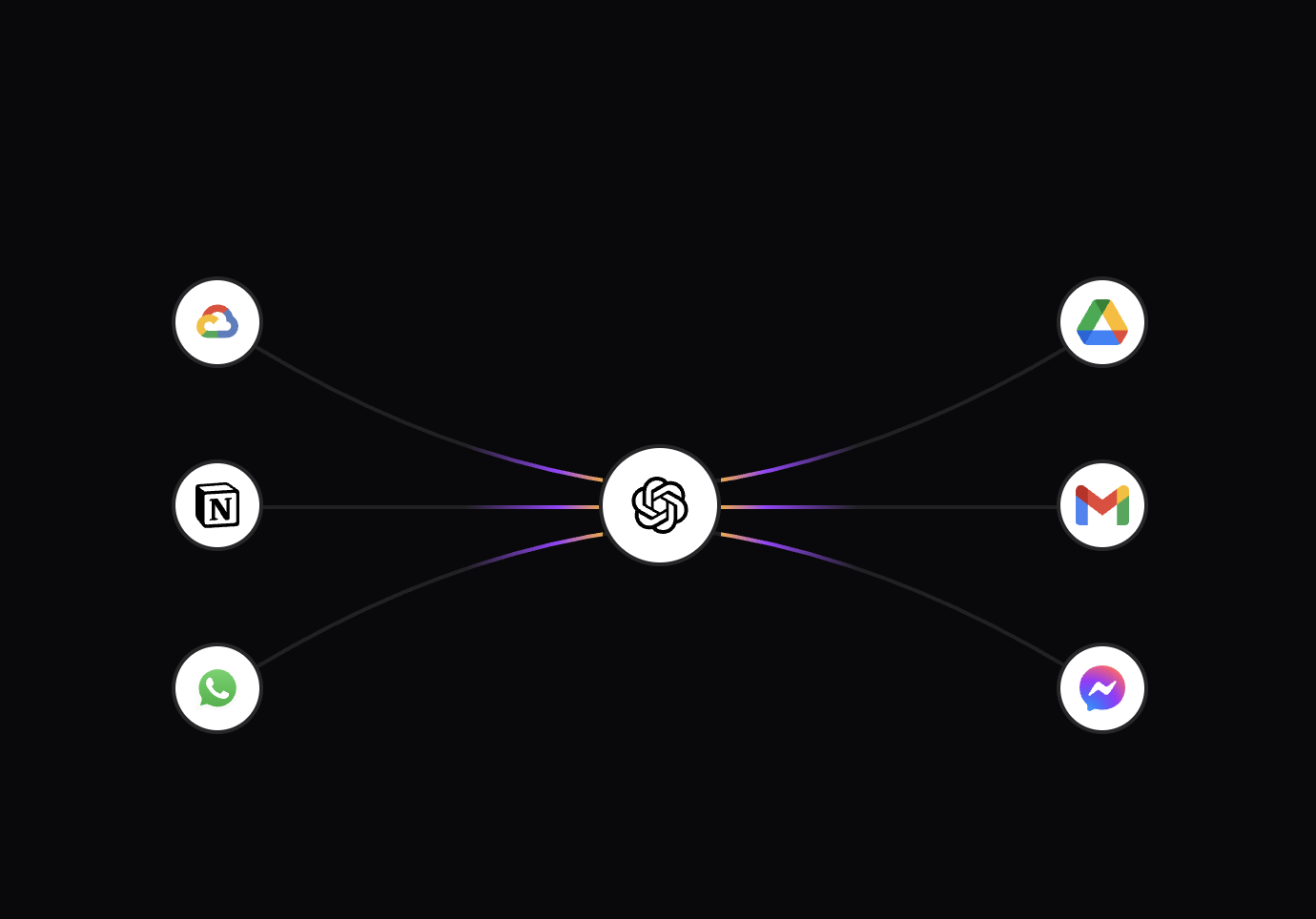 a thin, animated path that moves energy between elements, suggesting intent and continuity.